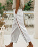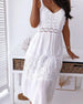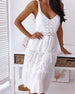 SPEZIFIKATIONEN Stil: Urlaub, Boho, Elegant Material: Baumwolle Kleid Länge: Knielang Ausschnitt: V-Ausschnitt Muster Typ: Einfarbig Ärmellänge: Ärmellos Einzelheiten: Bestickt, Spitze Passform Typ: Normal Jahreszeit: Sommer Anlass: Urlaub Paket enthält: 1 x Kleid GRÖSSENTABELLE (cm) Größe Brustumfang Länge Taille S 95 82 82 M...