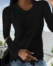 SPEZIFIKATIONEN Oberteil Typ: Oberteile Stil: Elegant Material: Baumwollmischungen Anlass: Täglich Ausschnitt: V-Ausschnitt Muster Typ: Einfarbig Ärmel Typ: Regulärer Ärmel Ärmellänge: Lange Ärmel Passform Typ: Normal Jahreszeit: Frühling,Herbst,Winter Einzelheiten: Patchwork,Spitze Paket enthält: 1 x Oberteil GRÖSSENTABELLE (cm) Größe Brsut...