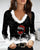 Bedrucktes Langarmshirt mit V-Ausschnitt